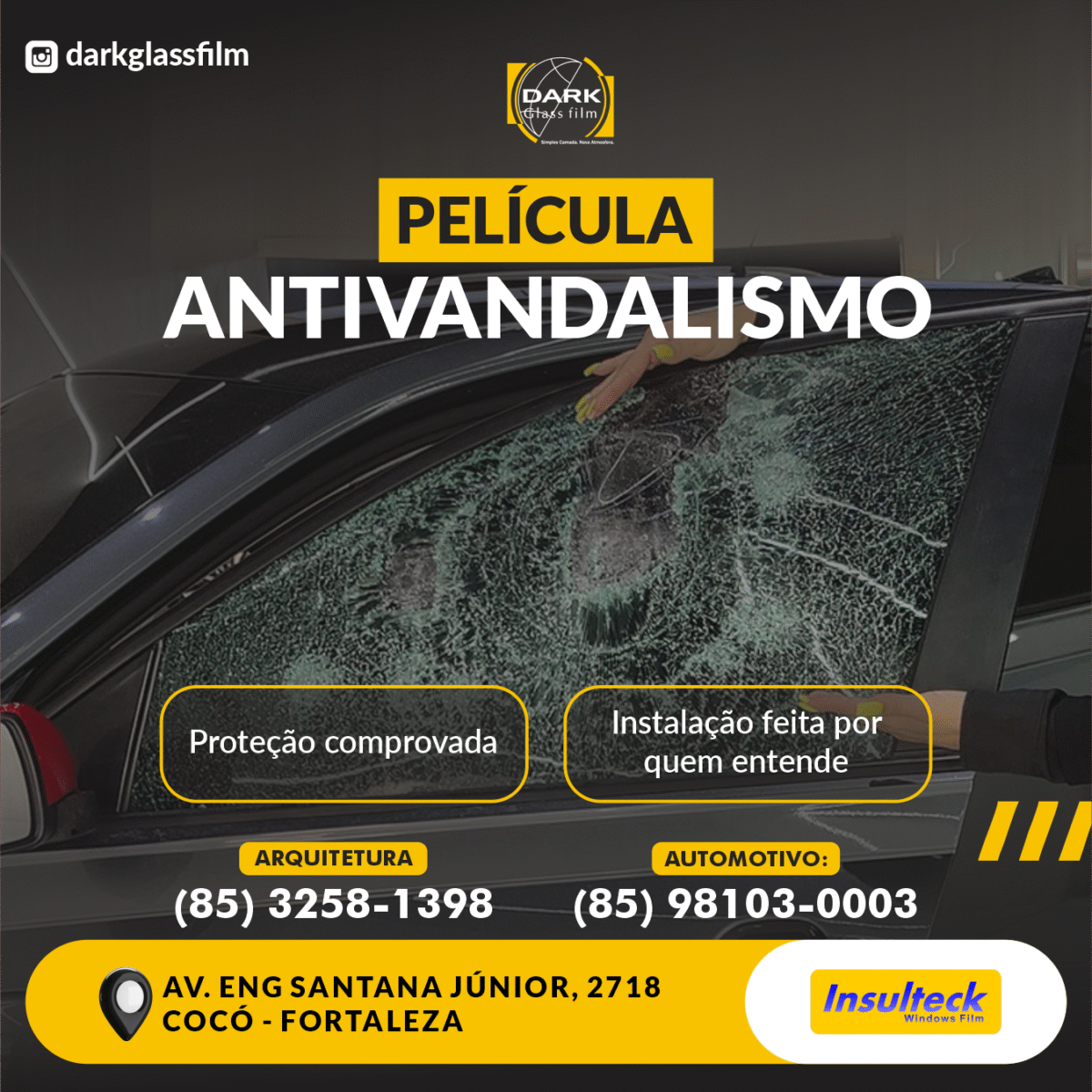 As Películas de Segurança da Dark Glass Film são desenvolvidas para garantir resistência, controle de estilhaços e proteção contra impactos em vidros automotivos e arquitetônicos. Com tecnologia avançada e aplicação profissional, elas oferecem reforço estrutural, proteção UV e privacidade, sem comprometer a luminosidade natural dos ambientes.